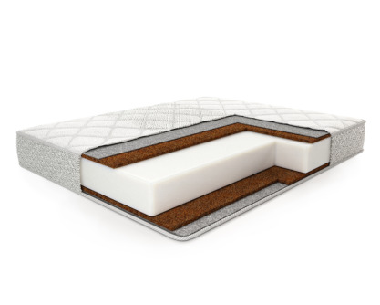 Чехол: несъёмный, из плотной трикотажной ткани с содержанием льна, простёган на искусственном волокне Холлкон (200 гр) и 0,8 см пены - пышность и объём. Бурлет матраса выполнен из плотного мебельного жаккарда шоколадного цвета, простёганного на ППУ 1 см — усиление периметра, сохранение геометрии матраса на протяжении всего срока службы.